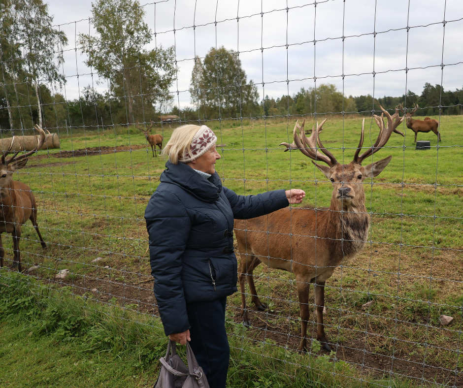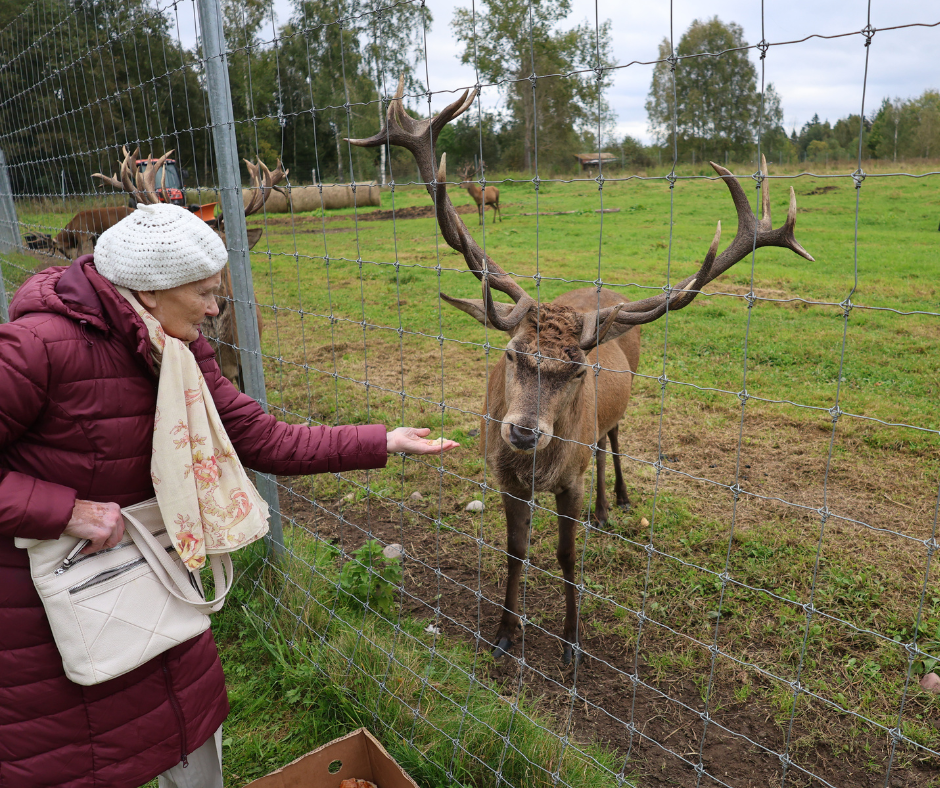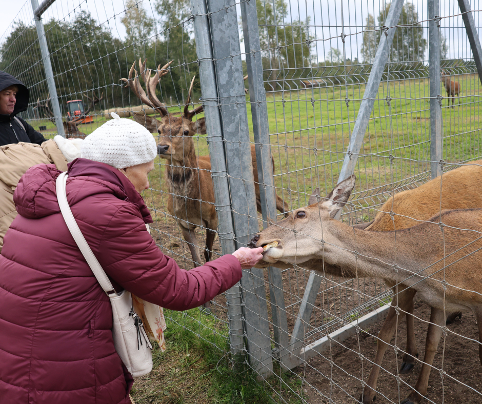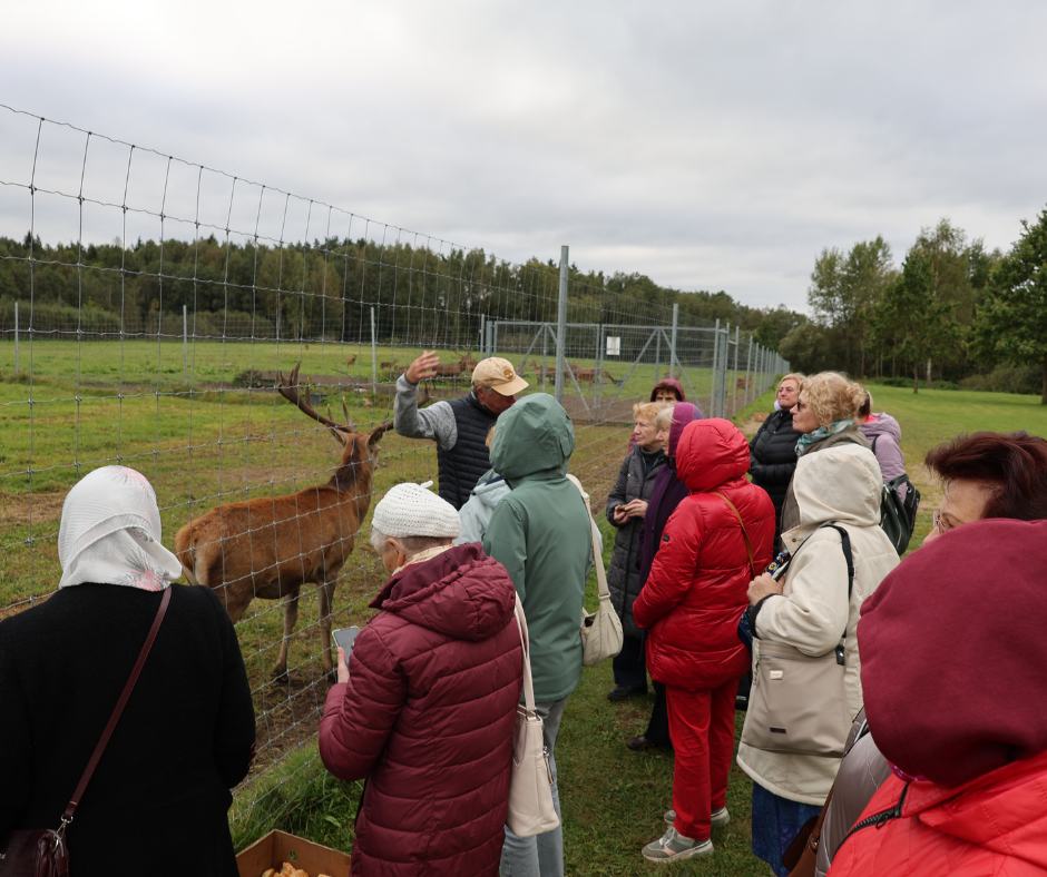 Apsilankymo metu senjorės susipažino su tauriųjų elnių gyvenimu, jų auginimo tradicijomis ir turėjo progą juos pamaitinti. Išvykos metu prie bendro stalo su užkandžiais ir arbata kartu paminėjome ir rugsėjo 28 – spalio 3 d. vykstančią „Senjorų savaitę“. Primename, jog grynas oras, artimas ryšys su gamta ir bendrystė dovanoja džiaugsmą, mažina įtampą bei stiprina emocinę sveikatą, nesvarbu, kiek Jums metų